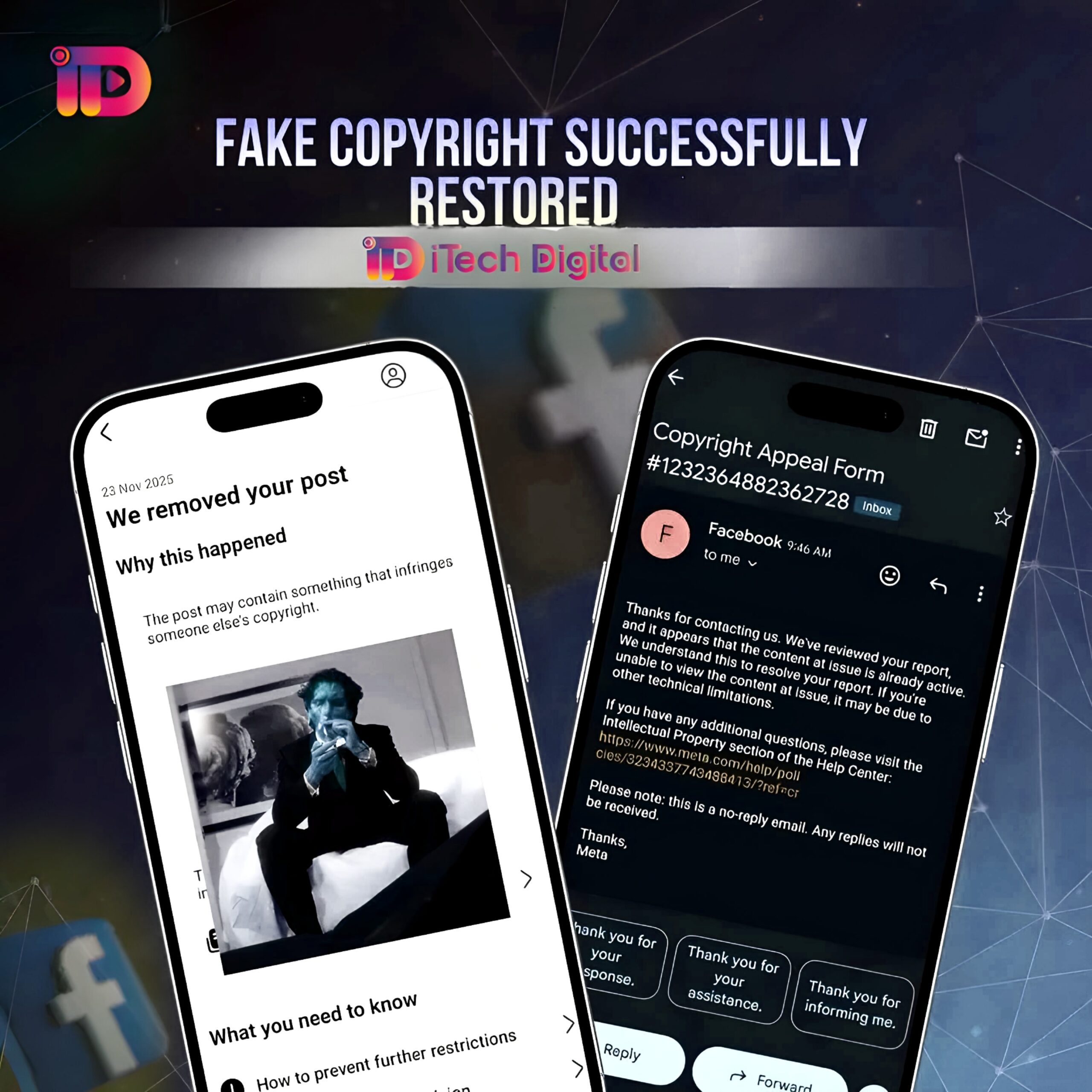 Content restoration is subject to the platform’s final review and decision.