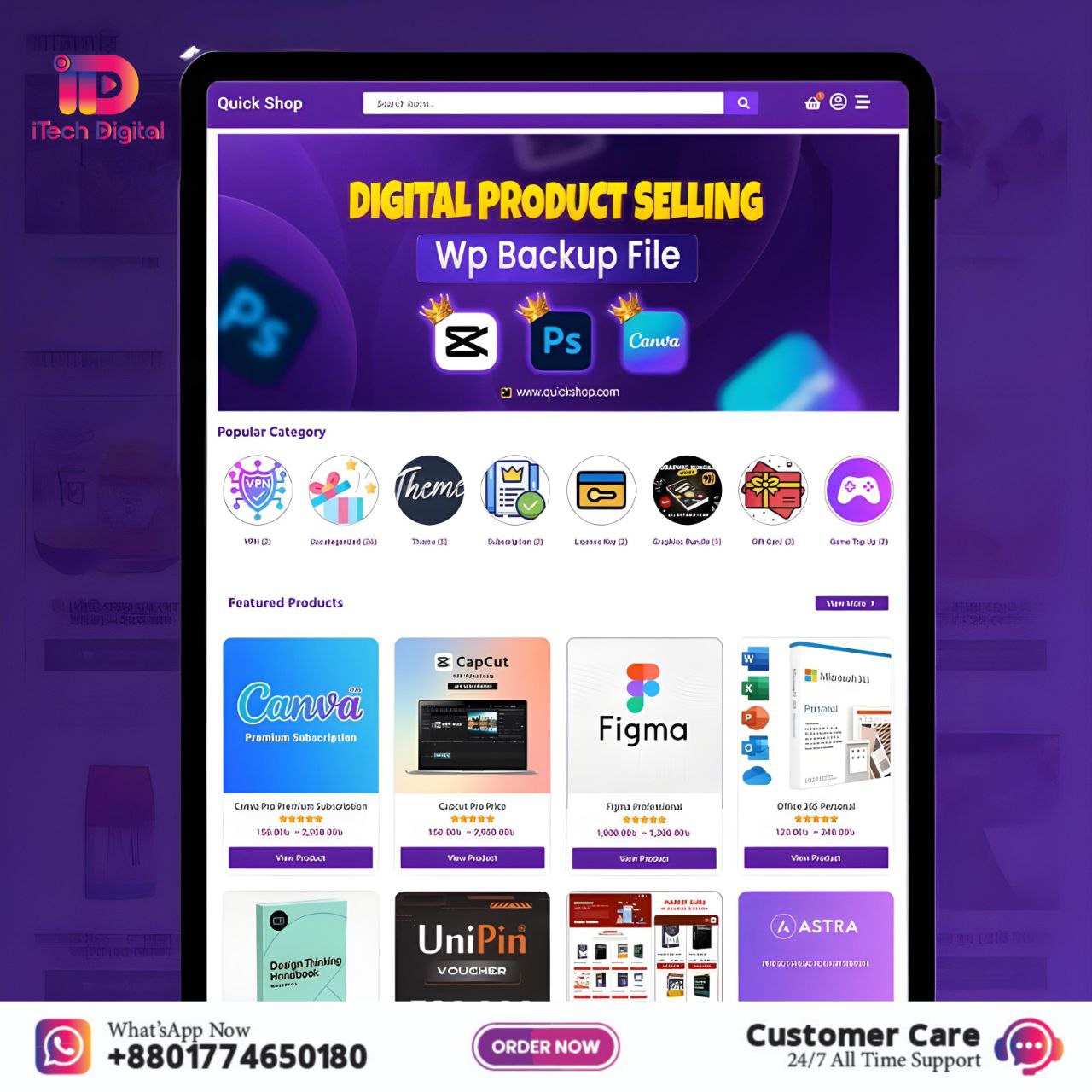 আপনার ডিজিটাল পণ্য বিক্রির জন্য সম্পূর্ণ প্রস্তুত একটি প্রিমিয়াম WordPress ওয়েবসাইটের রেডিমেড ব্যাকআপ ফাইল।